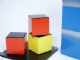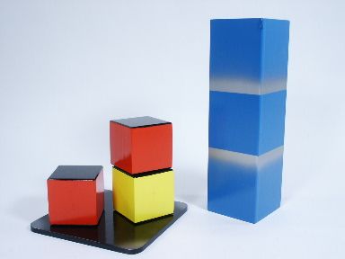 The tube is placed upon a solid platform and the yellow block is placed in followed by the two red blocks. When the tube is lifted away it is seen that the yellow block has moved to a position between the two red blocks!