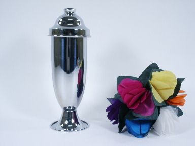 A beautiful Mikame item found in the original box. The flower pot is shown and the top is removed and the magician pours in some water and closes the lid. When the lid is again removed silks and flowers make their appearance! Silks not supplied. Made of metal that is chromed. Includes instructions. Condition beautiful.