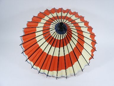 A flame appears in the magician's hands and suddenly the flame is gone and in place is a beautiful parasol with a hypno spiral design that adds to the effect of production as the magician spins the shaft of the parasol. A Scarce item and in very fine condition. Sold as a magic artifact only not intended for use although in fine working order.