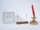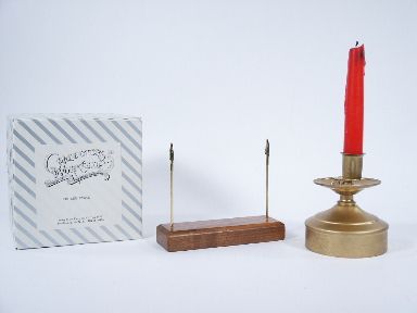 An early self-contained unit made of metal in first rate working order including 3 pages of illustrated instructions. With this mechanical candle and its wooden envelope stand the magician may have at his disposal a very funny effect.