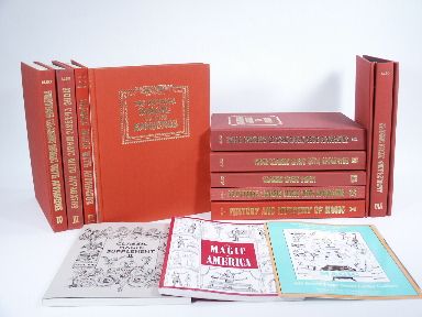 The series includes, *1973 The Oriental Magic Of The Bambergs (1), Limited Numbered Edition, 228 pages, illustrations and color plates. Condition very fine. *1976 Classic Magic With Apparatus (2) Limited Numbered Edition with Autograph, 208 pages with illustrations and color plates. Condition very fine. *1976 More Classic Magic With Apparatus (3) Limited Edition Autographed, 268 pages with illustrations and a large color plates section. Light soil to cover with a 1 1/2" darker spot near bottom edge. Condition fine. *1982 Further Classic Magic With Apparatus (4) Limited Edition inscribed with Autograph, 229 pages with illustrations and a large photo plates section in color. Condition very fine. *1985 Still Further Classic Magic With Apparatus (5) a Limited Edition, Inscribed with Signature, 339 pages with illustrations and a large color plates section. Condition very fine. *1986 Final Classic Magic With Apparatus (6) Inscribed and Autographed, 415 pages with illustrations and a color section. Condition very fine. *1986 Classic Magic Index (7) Autographed, 266 pages with illustrations and a large color section. Condition very fine. Binder with Classic Magic Supplement imprint and number 8 on backstrip. This was done with the idea that future supplements could be mounted on the three metal posts which hold the binder together. This originally came with loose sheets dealing with *Thayer *Okito Time Line and *Force Books all of which are absent. Binder condition fine. *1998 Additional Classic Magic With Apparatus (9) Limited Edition, 260 pages with illustrations, a large color section also having a separate section as a bonus entitled, Additional Additions also having color plates. Condition very fine. *2001 History And Mystery Of Magic (10) Limited Edition, Autographed, 444 pages having large color section. Condition very fine. Also included with this series, *1989 South Hope Street Lobby Gallery Display of Dr. Albo. Condition very fine. *1995 The Magic Of The United States American Laboratories Of Legerdemain (1850-1950) Autographed, 103 pages plus large color section, soft bound having 2 sheets of color section loose. Condition very good. *1989 Classic Magic Supplement 2, Autographed, 167 pages with many photos and color section. Condition fine. All of the volumes 1 through 10 are cloth bound with Gilt stamping and I can assure you that ownership of these books will have you looking them over time and time again as the amount of material contained within is voluminous. | |