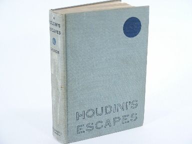 Cloth bound, 317 pages with illustrations. Some of the sections within the contents are *Rope Ties and Chain Releases *Underwater Escapes *Box Escapes *Special Challenges *Trunks-Barrels-Coffins. This book was prepared from Houdini's private notebooks and memoranda with the assistance of Beatrice Houdini and Bernard Ernst. Previous owner's signature and Ex Libre rubberstamp along with rear end paper abrasion from card pocket being removed. Foxing mainly to first three leaves and title page also soil to backstrip. Condition good. | |
