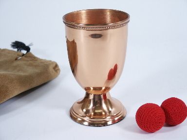 An absolutely beautiful copper cup with a fine beaded trim around the mouth adding to the elegant style of this cup made by master craftsman Tim Star. Includes the original set of balls also made by Mr. Star and a suede bag for carry. Includes 2 pages of illustrated instructions and this you will find to be a perfect special addition to your collection. Condition beautiful.