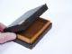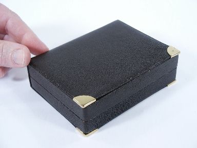 Original items by Richard Himber are dear and seldom seen as the effects were produced in strictly limited small quantities using the highest quality materials available such as Italian Leather and Gold & Silver. Mr. Himber left this world far too soon in 1966 at the age of 59 and those alive today that knew him will tell you of the great loss to the magic community of one of the most colorful characters and clever minds in magic. The magician shows two decks of cards, one a red pack in a red card box and a blue pack in a beautiful leather case. A spectator is asked to remove one red card and place it in the leather case the box is closed and tossed to a spectator and the red card on top of the blue deck in the case matches the value and suit of one blue card which is found reversed in the blue pack! The magician then offers to repeat the trick going through the same motions only this time when the spectator opens the box there is no blue pack or red card absolutely nothing! The box is completely empty and there is no room for the deck to be concealed! Himber himself stated "Guard the box and its secret well as this will be a Collector's item". The beautiful box is handmade of beautiful pin grain imported leather with gold corners. Cards not included as you will use your own. Includes instructions. Condition very fine. | |
