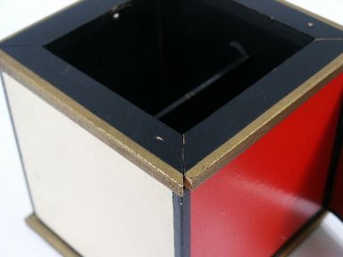 A white silk is placed in a red box and instantly by merely passing the hand over the box the box changes to white and is shown on all four sides. Reaching in the box the silk is removed and shown to have changed to red! Silks not supplied. Flap shows some wear and top corner of box has small cut notch for quick orientation by feel. Includes instructions. Condition good. | |