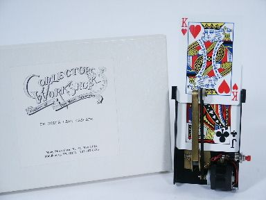 From 1988 this is a well built unit that makes for fun and mayhem. The magician has a card selected and then points to his breast pocket suggesting that the card has traveled to the pocket. After all eyes are drawn to the pocket a fountain of cards spring forth from the pocket into the air and the chosen card however is the last one in the fountain and remains stationary protruding from the pocket!