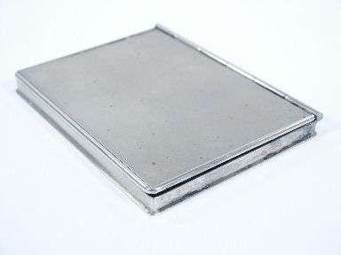 Made of Cupro Silver and trademark stamped. This box has had some work mainly on one short end but still seems to function as a device for vanishing or exchanging a playing card. Includes instructions. Condition as is.