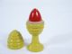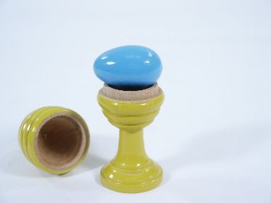 A charming vase of turned wood for the changing of a red egg into that of blue. Stamped Germany. Condition very fine.