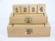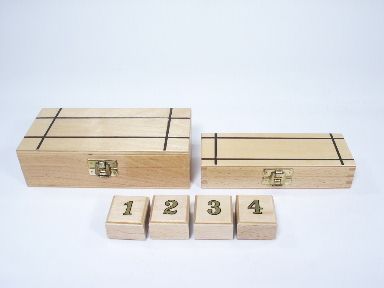 Four numbered blocks placed in any order in a box by the spectator and this sealed box placed within another larger box also closed with a catch. The magician is able to correctly divine the order of the blocks. Beautiful wood and quality manufacture made in Germany. Includes instructions. Condition very fine. | |