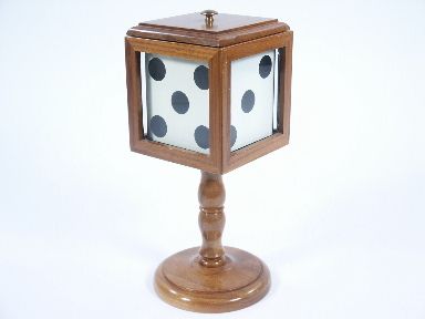 If you want an effect that is beautiful, pleasing to the eye and a mystery as well this would serve the purpose. A 3" die is shown and placed in a hat or other suitable container. A glass lined container made of beautiful woods is shown and placed upon the table. The magician removes the die from the hat and places it in the casket which shows quite well since it is elevated by being on a pedestal.