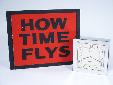 Still to this day a clever vanish of a metal clock and using the decorated panel leading the audience to suspect the clock is merely hidden behind it you turn it around and it reads "How Time Flys". Includes instructions. Condition very good.