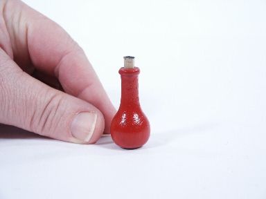 This is an early well made bottle of wood from the Adams Company stands 1 1/2" high and includes a miniature cork. The magician is able to lay the bottle down and have it stay in place and the spectator is unable to do the same. Includes instructions. Condition very fine. | |
