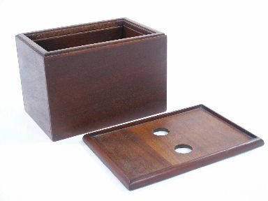 Made of Mahogany wood along with tray to fit. A unique piece of apparatus for the vanish and reproduction of silk (not included). Two flaps both are locking however due to age one flap has a slight bow. Condition good. | |