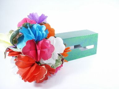 A chest slides apart leaving behind a housing with openings you may see through and the drawer section is empty. After showing empty the drawer in inserted in the tunnel and a production is made and in this case of spring flowers that are included. The tunnel measures 11 1/4" long x 6" high x 5" wide made of wood and metal finished in lacquer. Includes instructions. Condition very fine. | |