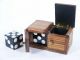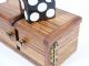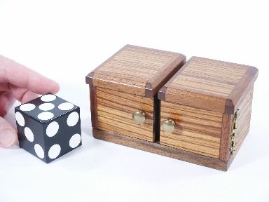 Nearly 25 years old and made of solid woods with the right kind of construction to make it last and in addition to the positive sound mechanism this has a unique feature that gives the magician the ability to show the die in either side of the box at will even though it has long since vanished! This was sold by Bob Little in the 1980's. Condition very fine. | |