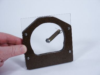Reminiscent of the Himber small size glass penetration where a brass arm much like a clock dial is rotated about the face of the glass and then penetrated with a pin at any position. No instructions. Condition very good.