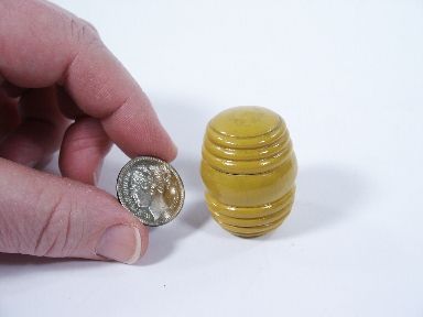 This nicely turned wood barrel is shown with a Victoria coin and the coin is dropped inside and the barrel closed. When opened it is shown that Victoria has vanished. Condition very fine.