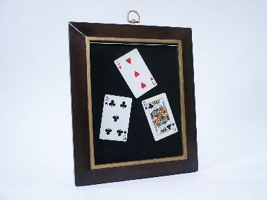 A picture frame in wood having nothing within is seen and hung upon a hook or leaned against something. Cards may be selected from a deck and returned and the deck is made to shoot at the frame by springing the cards or the deck is just tossed against the frame. The cards fall away and there within the frame behind the glass are the selected cards!