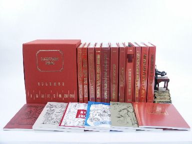 The series includes, *1973 The Oriental Magic Of The Bambergs (1), Limited Numbered Edition with Autograph, 228 pages, illustrations and color plates. Condition very fine. *1976 Classic Magic With Apparatus (2) Limited Edition, 208 pages with illustrations and color plates. Condition very fine. *1976 More Classic Magic With Apparatus (3) Limited Edition, 268 pages with illustrations and a large color plates section. Condition very fine. *1982 Further Classic Magic With Apparatus (4) Limited Edition with Autograph, 229 pages with illustrations and a large photo plates section in color. Condition very fine. *1985 Still Further Classic Magic With Apparatus (5) Limited Edition with Autograph, 339 pages with illustrations and a large color plates section. Condition very fine. *1986 Final Classic Magic With Apparatus (6) Autographed, 415 pages with illustrations and a color section. Condition very fine. *1986 Classic Magic Index (7) Autograph, 266 pages with illustrations and a large color section. Condition very fine. *Binder with Classic Magic Supplement imprint and number (8) on backstrip which includes the Floyd Thayer Supplement, Forcing Books and Book Tests Supplement and the Okito Timeline, all separate sheets nicely sleeved in clear sheet protectors. This was done with the idea that future supplements could be mounted on the three metal posts which hold the binder together. Condition very fine. *1998 Additional Classic Magic With Apparatus (9) Limited Edition, 260 pages with illustrations, a large color section also having a separate section as a bonus entitled, Additional Additions also having color plates. Condition very fine. *2001 History And Mystery Of Magic (10) Limited Edition of 500 copies only, Autographed, 444 pages having large color section. Condition very fine. *2005 Laboratories Of Legerdemain (11) Limited Edition of 300 copies only, Autographed, 486 pages, multiple full color plates and illustrations throughout. Condition very fine. Also included with this series are the following supplements: *1986 Magic Supplement, 108 pages, full color plates and illustrations. Condition very fine. *1989 Classic Magic Supplement 2, Autographed, 167 pages with many photos and color section. Condition very fine. *1994 The Magic Of Britain, 78 pages of text along with approximately 40 pages of full color section. Condition very fine. *The Magic Of France, Autographed, over 120 pages with full color sections. Light soil spot to cover along with minor bend in cover and first few pages otherwise condition very fine. *1995 The Magic Of The United States American Laboratories Of Legerdemain (1850-1950), 103 pages plus large color section. Condition very fine. *2004 Thoughts And Reminiscences On The History And Mystery Of Magic, Collector’s Edition, Autographed, full color plates with a Color Section of Antique Conjuror’s Tables. Also includes mirror card of the Classic Magic Series. Condition very fine. The box slipcase to hold the first 8 numbered volumes is in very fine condition. All of the volumes 1 through 11 are cloth bound with Gilt stamping and I can assure you that ownership of these books will have you looking them over time and time again as the amount of material contained within is voluminous. (Magician bank pictured not included.) | |