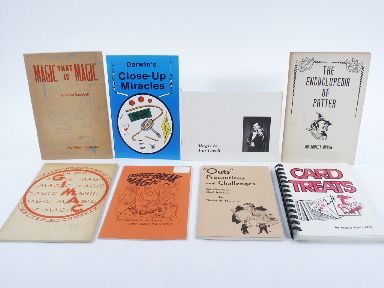 *Gary Darwin, Darwin's Close-Up Miracles, 1982, 40 pages. *Robert Orben, The Encyclopedia of Patter, 1946, 40 pages. *Jacob Taub, Card Treats, 1979, 84 numbered pages. Johnnie Murray & Don Tanner, Coffee-Break Magic, 1968, 16 pages. *Jan Torell, Magic, 1975, 30 pages. *Charles H Hopkins, "Outs" Precautions and Challenges for Ambitious Card Workers, 1978, 79 pages. *Walter A Schwartz, GIMAC: Latest Book of Magic, 1933, 39 pages. Condition varies, but usually good. | |