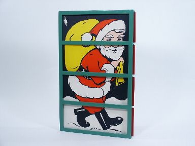 Created by Len Belcher and produced in Great Britain in 1979. This good size effect of a mixed up Santa Claus will be well received with the upcoming holidays and may be used all year round as it has the pictures of Fairy Princess as well. The frame is of wood and measures 11" wide x 18" high making it a visual effect for a sizable audience.