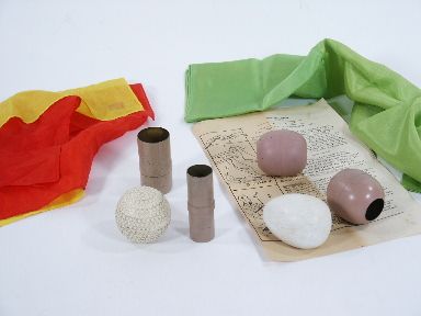 Within this lot you will find 2 Harold Rice Palmo gimmicks which are an improved color changing ball both made of brass and includes 4 pages of illustrated instructions. Two different sized Dye Tubes both with ribbon division for dying a silk through the hand. A silk to Egg and Silk to Golf Ball along with 2 worn silks and 1 18" green fine condition Rice SKS silk with color fade.