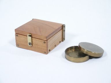 From Douglas-Wayne Illusioneering 1993. A unique combination of the Lippincott box and Okito box. The chest itself is of a new design compared to the original Lippincott box and this combined with a precisely sized and weighted brass coin box.