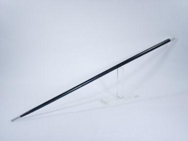 This in metal with release bar that a silk may be tied to for the transformation of a silk into that of a cane. Includes illustrated instructions for the New and Improved Appearing Cane. This cane opens strong to 43 1/2" without the use of a silk. Condition fine.