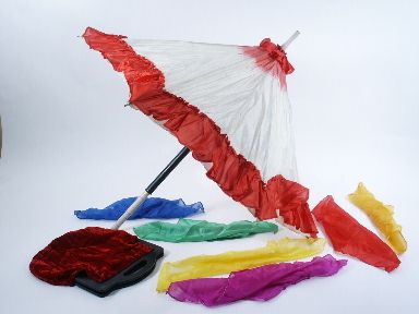 Bob Dowd Collection. Unlike others you may have seen, this one has more of the look of a Ladies Sunshade and the Handbag with red velvet makes for a very nice outfit for this classic effect. The assistant walks on stage with Sunshade over head and Handbag in hand.