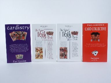 Trost Collection. The Second 16th Card Book by Tom Craven and Paul Gordon, 2007, soft bound, 110 pages. With credit to Nick Trost for previously published items. Condition very fine. The Second 16th Card Book Volume 2, Paul Gordon, 2007, soft bound, 139 pages, photos, illustrated. Condition very fine. Paul Gordon's Card Collective, 2008, soft bound, 185 pages, photos, illustrated. Includes note from Paul Gordon to Nick Trost. Condition very fine. Cardistry by Paul Gordon, 2007, soft bound, photos, illustrations. Condition very fine. | |
