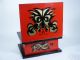 Upon the magician's table an attractive chest is seen that measures 17" wide x 14" deep x 7 1/4" high. At this point the magician lifts the lid and places within a rabbit, doves and the like or for that matter a rocky raccoon or other that he may wish to have vanish. Upon command the lid is opened and top of chest lifted away showing both sides and set aside or handed to an assistant. The four sides are taken up out of the bottom frame piece by piece also showing both sides and with the magician making the statement that the vanish is complete!