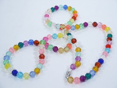 Produced a number of years ago by Gene Elmo. In this improved version by Mr. Elmo the necklace of rainbow colored beads is cut at its center and the beads dropped into a cocktail glass. The thread of the necklace is placed into the magicians mouth and then the beads are to follow. In but a moment the magician pulls the restrung necklace from his mouth! Another method is given if not wanting to do the mouth and swallowing style. Includes illustrated instructions. Condition as new.