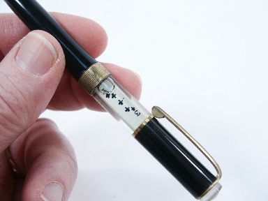 This effect makes use of this rather interesting pencil of years ago. A prediction of a playing card is written on a paper that is crushed into a ball and placed aside. The deck is shuffled and cut and cards selected by spectator which is returned and then again shuffled and placed on the table. Another spectator is asked if he can possibly know the name of the card written on the paper. The answer is no but the magician says that the spectator has the ability to look ahead into the future and that he will try and help him to obtain an impression. The crumpled prediction is impaled on the point of the pencil and the spectator gazes at it and says that he has thought of the name on the prediction. The crumpled ball is given to another spectator who removes it from the pencil. The first spectator is asked what he thinks the name is and the name of the card is given. The spectator then opens the prediction and reads it out loud and it proves to be the same! The person who selected the card is then asked to give the name of the card and again it is the same! For the finale the pack of cards is ribbon spread face up on the table and one face down cards is seen. It is turned over and it is the chosen card! Includes 2 pages of instructions with routine and the pencil which through the years has had the bottom half with the point warp a little which actually does not prevent any function that it may have in the routine. Condition good. | |