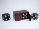 With a 2 1/2" die this makes use of an internal sound mechanism and a double door feature. The solid wood die is worn but surprisingly the metal shell and double door feature are very fine. The box measures 6 1/4" wide x 3 1/4" deep x 3 1/2" high having a finish in black and red crackle finished off with Brass knobs. Condition very good.