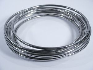 Made of stainless steel in 8" size circa 1950. This diameter ring would usually be made with 1/4" stock but these are made with 5/16" stock custom by Merv Taylor for Bob Dowd. The Merv Taylor Rings are of the highest quality with no visible seam and this 9 ring set includes 1 oversize ring. If you want the finest then here is your opportunity. Condition very fine. | |