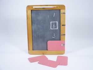 After three spectators have written random numbers and these totaled by a fourth spectator the total is written in a vertical row on the slate. Next to this row are four cards clipped on one edge covering half of the slate. A spectator is asked to name any of the visible numbers and immediately a square is drawn around that number. All of the cards are removed one by one showing the prediction to be correct with the last number that has the square around it revealed and the number under the card matches and has a square around it as well!