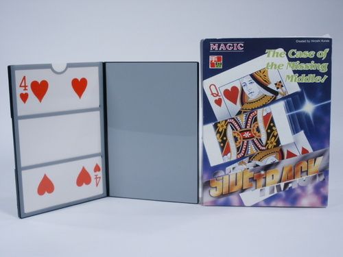 A jumbo card is shown and may be examined and placed inside a clear window in the side track case. It remains in full view at all times and then without any false moves the middle of the card is visibly pulled out! It is then pushed back in and the card is immediately removed and handed out for examination. Includes illustrated instructions and in very fine condition with original packaging. | |
