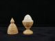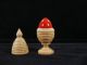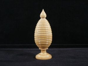 A precious and very fine piece with a multi layer effect and a challenge for whomever stood at the lathe and made this. Standing 3 5/8" high the vase is opened to reveal a small red bird egg. Closing the vase and opening again it is seen to have changed to a blue egg. Once more it is closed and opened now revealing a white egg. Closing once more and opening the white egg is seen to have vanished completely or a small article has made its appearance within. This is in first rate collector's condition. | |