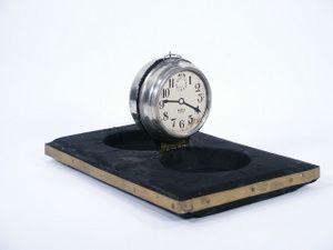 This early clock vanish has a rather unique method of mechanical vanish and the tray is only 1" thick. Covering cloth absent. Condition used.