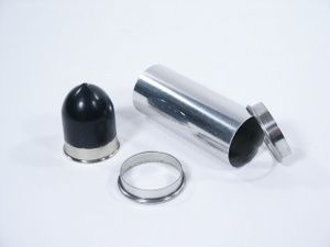 This petite size tube is 1 3/8" diameter and includes 2 retaining rings for tissue paper along with bullet load with tissue retaining ring. In first rate Collector's condition.