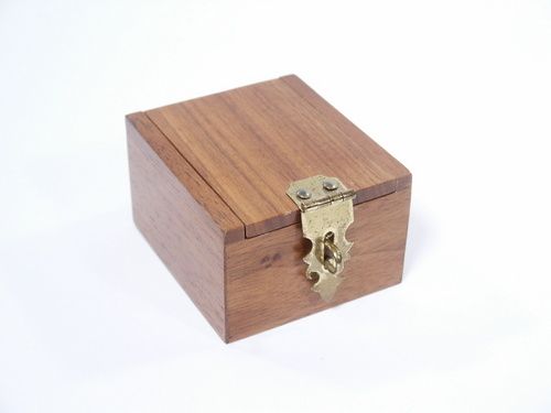 Mr. Miller has been out of production for several years and it is unlikely that items will be made again. Don't miss this opportunity to acquire this handmade item. This is a beautiful walnut box that is not a lippincott style but rather a simple and effective invisible locking trap as Mr. Miller designed and it will stand close scrutiny. This measures 2 3/8" wide x 2 3/4" deep x 1 5/8" high. This is signed and is number 10. Includes instructions. Condition very fine. | |