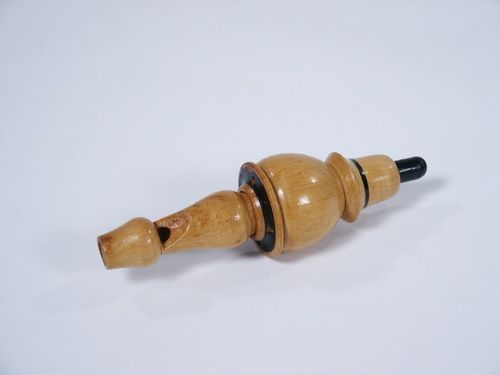 A novelty item in turned wood which is a whistle that the magician blows and cannot seem to get it to whistle. Handing it to a spectator to try the spectator will get a face full of black soot which in the day was thought to be funny. Condition very fine.