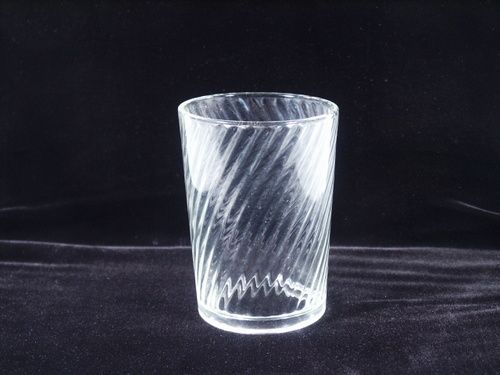 Glass stands 3 3/4" and is of a spiral flute design with smooth sides and polished inside edges of bottom opening. This one in very fine condition.