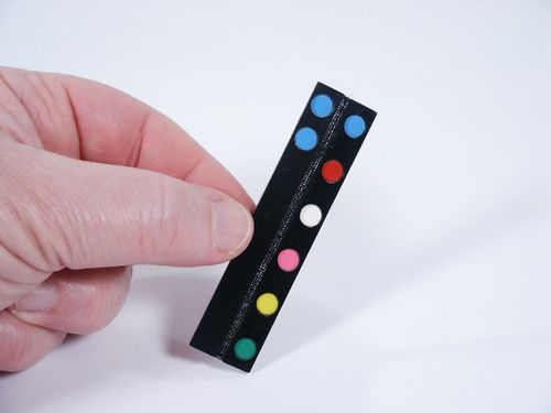 This was a unique style of paddle effect which made use of a cloth hinge to effect several changes and this is a slightly different style than that released later. All of the spots are inlaid colors, a lot of work went into making this and around the late 1980's sold for $20.00. Instructions for this pattern not available however instructions for a later version of this included for idea of how to handle this paddle. Condition very fine. | |