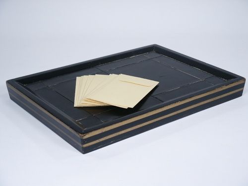 Four spectators may have their choice of 1 of 5 envelopes drawn from the wood tray with the enhancement of their ability to change their mind and swap for another envelope leaving the magician just one. The audience has been told that one of the envelopes contains a genuine banknote and the others to contain play money. The outcome is with the magician being left with the real currency. Funny bits of business may be had as the magician can use this to his benefit as play with the audience. Larger envelopes are included in the case that playing cards be used in some fashion. Includes instructions. Condition very good. | |