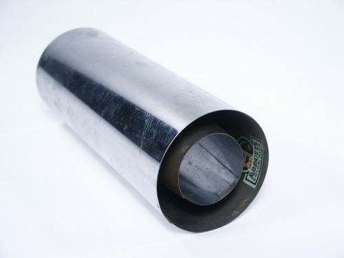 Measures 6 3/4" in length with a diameter of 2 1/2". Once shown empty the magician covers the ends with squares of tissue paper and rubber bands. Breaking one end of a tissue covering the magician is able to produce several silks (not included). Inside the gimmick you will find a very early Abbotts hallmark label. Condition fine. | |
