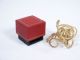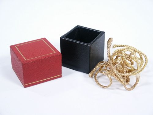 This beautiful box in the style of Italian Leather with Gold striping in size of 1 1/2" and includes Gold cord perhaps for use with one of his original rings. When the lid is placed on the bottom with the bottom half turned a quarter turn there is an opening of 1/4" which allows for some sneaky business if desired. Condition very fine.