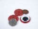 Two pennies, a nickel and three covers make it impossible for spectators to follow the Silver coin even when its cover is marked with an eye. One by one a coin and a cover is eliminated finally leaving a single covered coin. Spectator is asked to guess whether it is a penny or a nickel and regardless of the response it is shown to be neither as it has magically become a dime! Includes 2 pages on instructions by Lee Fried and this is from 1986. Condition very fine. | |