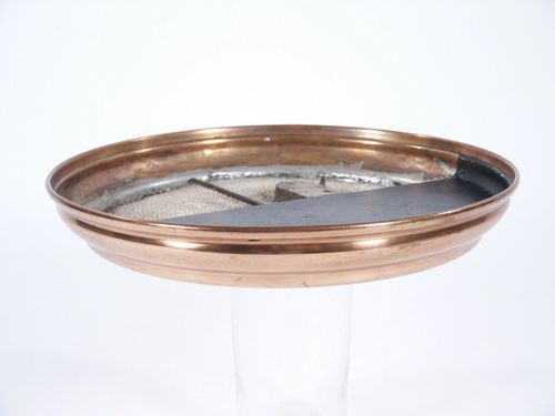 This all copper bowl measures 8 1/2" in diameter and only 1 3/8" deep and includes a trigger mechanism for igniting. Works well and in fine condition. Sold as a magic artifact only not intended for use.