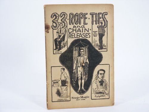 1947, softbound, 48 pages, illustrated by 65 drawings. A manual for the Profession on The Art or Rope Tying and Methods of Obtaining Releases from Ropes, Chains and Shackles. Previous owner's signature inside cover, staining by staples. Condition very good.